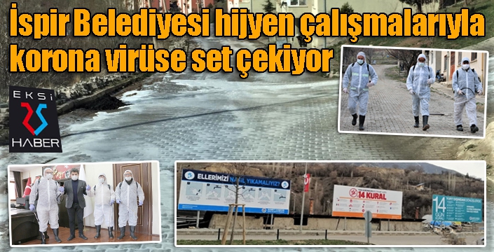 11 Mart 2020 tarihinde Türkiye’de Covid-19 vakasının görülmesinin ardından hijyen ve dezenfektasyon çalışmalarını derhal başlatan İspir Belediyesi, bir yandan ilçedeki tüm devlet kurumlarını, iş yerlerini, umumi tuvaletleri, apartman genel alanlarını dezenfekte ederken diğer yandan ise ilaçlı ve köpüklü suyla ilçe merkezindeki cadde ve sokakları aralıksız yıkıyor.