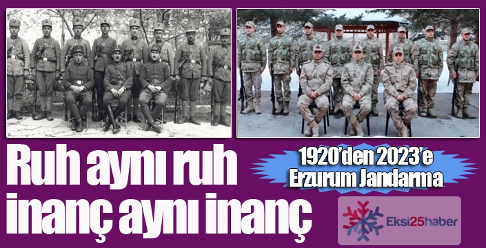 Jandarma Genel Komutanlığı’nın resmi sosyal medya hesabında yapılan bir paylaşım takipçilerini hem duygulandırdı hem de gurur verdi. 1930 yılında Erzurum’da 11 jandarma personelinin çekilen fotoğrafının benzeri şekilde günümüz jandarma personeli ile yine 11 personel ile çekilmiş fotoğraf karesi bir arada paylaşıldı. Erzurum İl Jandarma Komutanlığı personelinin 93 yıl önceki duruşun aynısını sergilemesi dikkatlerden kaçmadı. “Ruh aynı ruh, İnanç aynı inanç” notu düşülen paylaşıma binlerce beğeni ve yorum geldi.