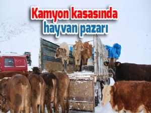EKSİ25HABER / ERZURUM - Erzurum'un Oltu ilçesinde tüccarlar, her hafta sonu cumartesi günleri kurulan canlı hayvan pazarında kar ve soğuk hava yüzünden kamyon kasasında hayvanları satmaya çalışıyor.
