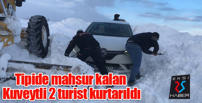 EKSİ25HABER / ERZURUM - Kar ve tipi nedeniyle kapanan yolda araçla mahsur kalan Kuveyt uyruklu 2 turist, AFAD, jandarma ve İl Özel İdaresi ekiplerinin ortak çalışmasıyla kurtarıldı.