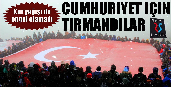 EKSİ25HABER / ERZURUM - Erzurum’da 29 Ekim Cumhuriyet Bayramı’nnda amatör dağcılar ve öğrenciler, kar yağışı altında Palandöken’in 3 bin 176 metredeki zirvesine tırmandı.