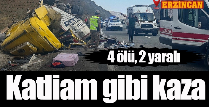 EKSİ25HABER / ERZURUM - Kaza, bugün saat 14. 45 sıralarında Erzincan - Sivas kara yolu Sakaltutan Geçidi mevkiinde meydana geldi. Alınan bilgiye göre, Ağrı’dan polis ve ailesini Ankara’ya götürmek için yola çıkan 04 T 0256 plakalı Hyundai marka ticari araç ile yoldan çıkarak karşı şeride geçtiği tahmin edilen Scania marka 71 ACY 330 plakalı eşya yüklü tır çarpıştı. Kazada ticari taksi tamamen hurda yığınına dönerken araçta bulunan sürücü polis ailesi ve bebekleri olmak üzere toplam 4 kişi hayatını kaybetti, tır sürücüsüyle birlikte toplam 2 kişi ağır yaralı olarak Mengücek Gazi Eğitim ve Araştırma Hastanesine kaldırıldı. Kaza mahallinde yaralı ile kopan bacağı sağlık ekipleri tarafından adeta zamanla yarışılarak hastaneye ulaştırıldı.