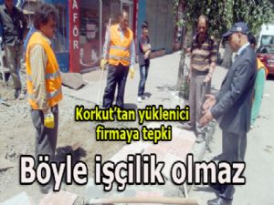 Belediyenin çalışmalarını sıklıkla takip eden, işin her safhasını denetleyen Yakutiye Belediye Başkanı Ali Korkut, Şükrü Paşa Mahallesi Eren sokakta yapılan karo ve bordürlerin işçiliklerini ve alt beslemelerini beğenmedi. Firma yetkilisine tepkisini dile getiren Ali Korkut, "Kaldırımı, halkın rahatça yürümesi için yapıyoruz. Engelliler için konulan girişlerin yanlarında bordürler aynı eğimde değil, karoların alt beslemeleri düzenli olmuyor. Bütün bunlar hizmetin zahmete dönüşmesi anlamına geliyor. Kaş yapayım derken göz çıkarmak gibi bir şey. Bu işleri düzgün ve düzenli yapmazsanız paranızı ödetmem. Ben halkımıza zahmet olsun diye para ödemiyorum" dedi.