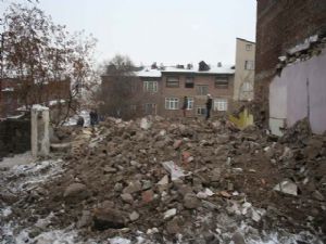 EKSİ25HABER / ERZURUM - Erzurum Valiliği'nin koordinesinde yürütülen Mahallebaşı ve Çevresi Sosyo-Ekonomik Dönüşüm Projesi kapsamında başlatılan ve Yakutiye Belediyesi tarafından yürütülen metruk binaların yıkım çalışmalarına olumsuz iklim koşullarına rağmen devam ediliyor.