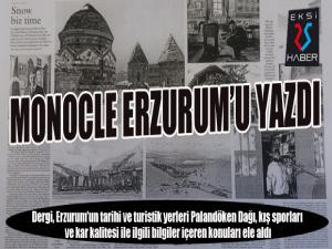 İngiltere merkezli Uluslararası yayın yapan Dünyanın sayılı kış turizm dergilerinden olan Monocle Dergisi Erzurumun tarihi ve turistik yerleri, Palandöken Dağı, kış sporları ve kar kalitesi ile ilgili bilgiler içeren konuları ele aldı.