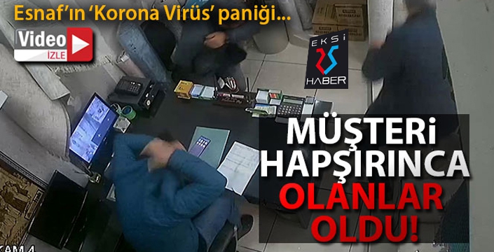 Olup bitene anlam veremeyen müşterisi de hızla diğerleriyle birlikte dışarıya kaçmaya çalıştı. Tekrar içeriye gelenler müşteri ve diğerleri anlık stresle gülme krizine girdi. Yaşadığı ilginç olayı gazetecilere anlatan Mahmut Ay, "Bölge bayimiz geldi. Oturdu, konuşurken hapşırdı. Neticesinde öyle bir refleks gerçekleşti. Ben montuma sarıldım. Montumla yüzümü korudum. Gündemde zaten koronavirüs var. Biz de esnaf olarak kullandım. Kendisine kolonya kullandırdık. Hapşırınca ilginç bir olay çıktı. Olayın ardından dükkanda stresle gülme krizine girenler oldu" diye konuştu.