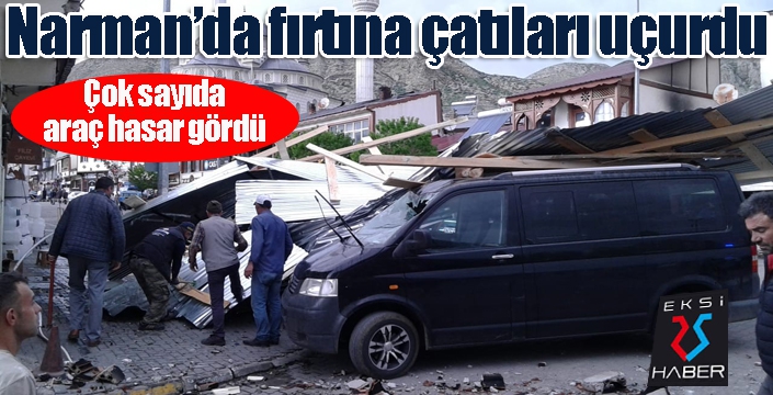 Narman’da öğe saatlerinde etkili olan fırtına bir çok evin ve işyerinin çatılarını uçurdu. Cumhuriyet Caddesinde Yusuf Okunuş’a ait işyerinin çatısı, Erzurum caddesi üzerinde Nevzat Turan'a ait işyerinin çatısını cadde üzerine uçurdu Çatıların altında Fehmi Turanoğlu ve Emre Tanrıverdi'ye ait araçlar hasar gördü