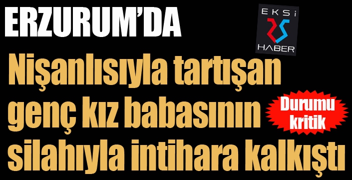 Olay Erzurum Şükrüpaşa Mahallesi'nde meydana geldi. Çağrı merkezinde çalışan Beyzanur A. (23) nişanlısıyla kavga etti. Öfkeyle nişanlısının yanından ayrılıp evine giden genç kız babasının silahını göğsüne dayayarak tetiği çekti. Ağır yaralanan Beyzanur A. Erzurum Şehir Hastanesi'nde tedavi altına alındı.