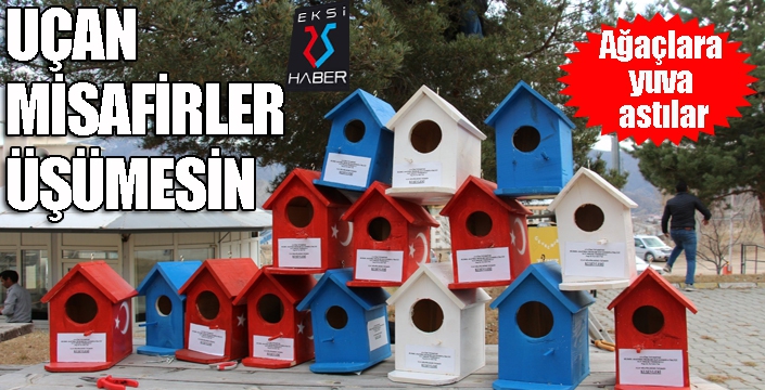 EKSİ25HABER / ERZURUM - Atatürk Üniversitesi Bilimsel Araştırma Projeleri (BAP) kapsamında Atatürk Üniversitesi Oltu Meslek Yüksek Okulu öğrencileri, “Uçan misafirler üşümesin” diye okul bahçesindeki ağaçlara 60 adet kuş yuvası astılar.