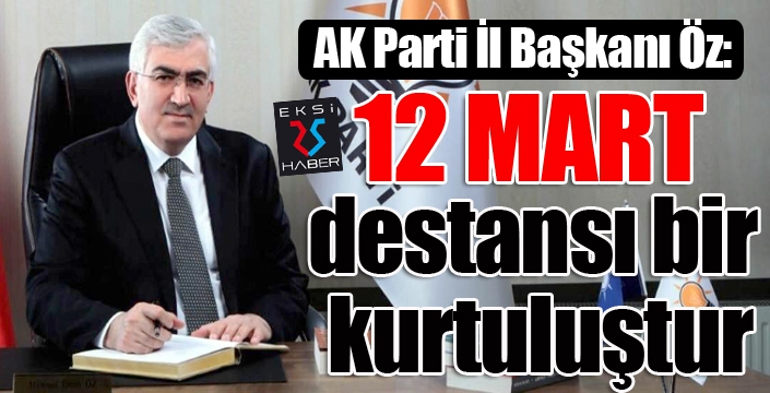 EKSİ25HABER / ERZURUM - AK Parti Erzurum İl Başkanı Mehmet Emin Öz, 12 Mart Erzurum’un Düşman İşgalinden Kurtuluşunun 104. yıldönümü münasebetiyle yayımladığı mesajda, Anadolu topraklarının şehit kanlarıyla sulandığını söyledi.