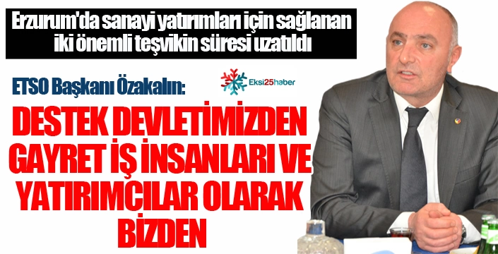 TOBB Yönetim Kurulu Üyesi ve ETSO Başkanı Saim Özakalın, teşviklerin Erzurum sanayisinin büyümesine önemli katkılar sağlayacağını belirterek, Sanayi ve Teknoloji Bakanı Mehmet Fatih Kacır, Erzurum Valisi Mustafa Çiftçi, önceki dönem İçişleri Bakanı Selami Altınok başta olmak üzere Erzurum Milletvekilleri, Büyükşehir Belediye Başkanı Mehmet Sekmen ve emeği geçen tüm yetkililere teşekkür etti.