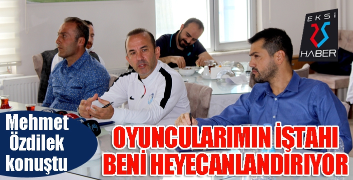 Antrenmanlarda ofansif anlamda çalışmalara yaptıklarını kaydeden Özdilek, “2-3 sistemi birden antrenmanlarımızda çalışıyoruz. Oyunun gidişatına göre gelişecek organizasyonları çalışıyoruz. Ama bunlar bir günde olmaz. Sonuçta elimizde bir sihirli değnek yok. Ama oyuncularımızın iştahları beni heyecanlandırıyor. Ortada bir hedef var ama çok fazla zamanımız yok. Çok gol atmıyoruz ama az gol yiyoruz. Daha az gol yiyip daha fazla gol atmak istiyoruz bunun için ofansif anlamda çok çalışıyoruz. Rakip 18’de sadece bir futbolcu ile değil 5-6 futbolcu olmak istiyoruz” şeklinde konuştu.
