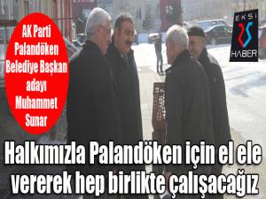 Kuruluşundan bu zamana kadar AK Partinin çeşitli kademelerinde yöneticilik yapan Sunar, seçim çalışmalarını yürüttüğü Palandökende, büyük bir ilgiyle karşılanıyor. Kimi zaman kahvehane sohbetlerine katılan, kimi zaman ev toplantıları yapan ve kimi zaman da esnaf ziyaretleri gerçekleştiren Muhammet Sunar, 31 Marttan sonra Palandökende başlayacak olan yeni dönemin yol haritasını seçmenlerle paylaşıyor.