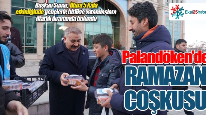 EKSİ25HABER / ERZURUM - Palandöken Belediye Başkanı Muhammet Sunar, Ramazan ayının paylaşma ve dayanışma ruhunu sahaya taşıyan “İftara 5 Kala” etkinliğinde gençlerle birlikte vatandaşlara iftarlık ikramında bulundu. AK Parti Palandöken İlçe Gençlik Kolları tarafından organize edilen programa, İlçe Başkanı Durmuş Kılıç ve İlçe Kadın Kolları Başkanı Saniye Tokçe de katıldı.