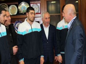 Avrupa ve Dünya Şampiyonası'nda Erzurum ve Türkiye'yi temsil etmeyi hedefleyen sporcular, Büyükşehir Belediyesi'nin desteğiyle hedeflerine ulaşacaklarını belirtti. Güreş sporunu severek yaptıklarını belirten sporcular, Büyükşehir Belediye Başkanı Mehmet Sekmen'in sporculara olan desteğinin sürdüğü sürece Erzurum'u madalyalarla anılan bir şehir haline getirmeyi arzu ettiklerini kaydetti. Güreşçilere tebriklerini ileten Erzurum Büyükşehir Belediye Başkanı Mehmet Sekmen de, diğer spor branşlarında olduğu gibi güreşte de Erzurum'u merkez haline getirmek için her türlü desteği sürdüreceklerini ifade etti. Ata sporu güreşte de başa güreşmeyi hedeflediklerini söyleyen Başkan Sekmen, "Gençlerimizi spor konusunda her branşta destekliyoruz. Erzurum milli sporcular yetiştiren bir şehir. Altyapı imkânlarını geliştirerek gençlerimizin olimpiyatlarda, uluslararası müsabakalarda madalyalarla dönmelerini bekliyoruz" diye konuştu. Bu arada ziyaret sonunda Başkan Sekmen, Erzurum Büyükşehir Belediyesi Genel Sekreter Yardımcısı Ünsal Kıraç ve sporcular hatıra fotoğraf çektirdi.