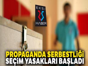 EKSİ25HABER / ERZURUM - YSK'nın seçim takvimine göre 31 Mart Pazar günü yapılacak Mahalli İdareler Genel Seçimi için belirlediği propaganda serbestliği ve seçim yasakları bugün başladı. Bugün başlayan propaganda serbestliği ve bir kısım yasaklar 30 Mart Cumartesi günü saat 18.00'de sona erecek. Seçime katılan siyasi partiler ve bağımsız adaylar, seçim propaganda süresinin sona ermesine kadar yazılı basında ilan ve reklam yoluyla ya da internet sitesi açarak sözlü, yazılı veya görüntülü propaganda yapabilecek.