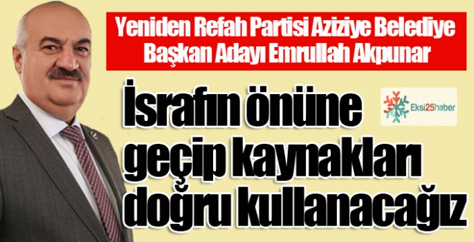 EKSİ25HABER / ERZURUM - Yeniden Refah Partisi Aziziye Belediye Başkan adayı Emrullah Akpunar, “Halk Meclisleri ile halkın belediye çalışmalarına katılımını sağlayacağız, Meslek Edindirme Kursları, sosyal konutlar, sosyal yardımlar ve aşevleri ile alt gelir gurupları destekleyeceğiz. Aileyi koruyacağız, kadınlara, çocuklara, yaşlılara ve gençlere sahip çıkacağız. Engellilerin hayatını kolaylaştıracağız. Eğitime destek vereceğiz en önemlisi belediyelerin imajını zedeleyen rüşvetin önüne geçeceğiz, israfın önüne geçip kaynakları doğru kullanacağız.” dedi.
