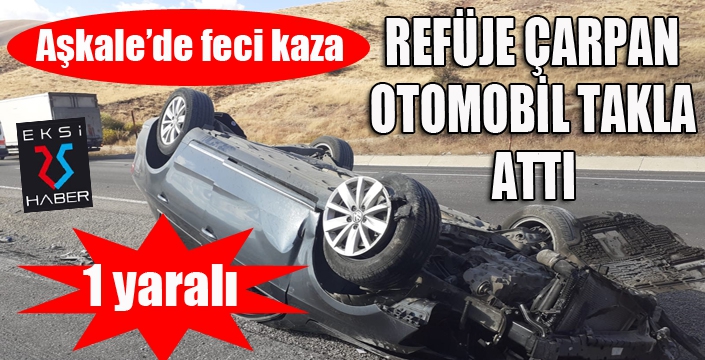Alınan bilgiye göre Erzincan’dan Erzurum istikametine seyir halindeki 41 F 6851 plakalı otomobil Tepebaşı mevkiinde dikkatsizlik sonucu yol ortasındaki refüjlere çarparak takla attı. Erzurum Büyükşehir Belediyesi Aşkale İtfaiye ekiplerinin müdahale ettikleri kazada ismi öğrenilemeyen sürücü yaralı olarak İlçe Devlet Hastanesine kaldırılarak tedavi altına alındı.