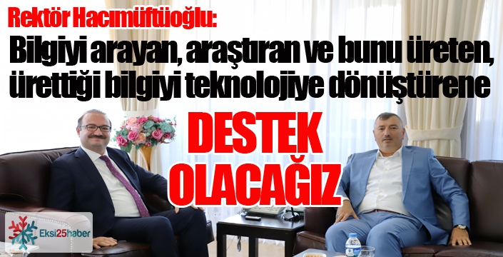 Gaziantep İslam Bilim ve Teknoloji Üniversitesi Rektörü Prof. Dr. Şehmus Demir, Rektör Hacımüftüoğlu’nu makamında ziyaret ederek yeni görevinde başarılar diledi. Rektör Hacımüftüoğlu’nu tebrik ederek hayırlı olsun dileklerini ileten Rektör Demir, Atatürk Üniversitesi ile birlikte yeni projeler içerisinde yer almaktan mutluluk duyacaklarını belirterek, iki üniversite arasında iş birliği ve bilimsel araştırmalarda ortaklaşa hareket edilmesi gerektiğini aktardı. Prof. Dr. Hacımüftüoğlu ise Rektör Demir’in nazik ziyareti dolayısıyla kendisine şükranlarını sunduğunu ifade ederek şunları söyledi: “Bölgemizin en eski ve en köklü üniversitesi olan Atatürk Üniversitesi; bilgiyi arayan, araştıran ve bunu üreten, ürettiği bilgiyi teknolojiye dönüştüren her kesime desteğini sürdürecektir. İş birlikleriyle hayata geçirilecek projeler, şehirlere verdiği olumlu katkılarla diğer üniversitelere de örnek teşkil edecektir” dedi.