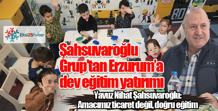 EKSİ25HABER / ERZURUM - Otomotiv ve İnşaat Sektöründe yaptığı yatırımlarla adından söz ettiren Şahsuvaroğlu Grup, Erzurum’daki yatırımlarına bir yenisini daha ekliyor. Şahsuvaroğlu Grup Yönetim Kurulu Başkanı Yavuz Nihat Şahsuvaroğlu, bugüne kadar biri Karaçoban’da olmak üzere 5 Kreş (çocuk atölyesi) hizmete açtıklarını belirterek, yeni sezonda Ilıca yolu üzerinde açacakları ilk ve Ortaokulla Erzurum’da eğitime önemli bir katkı yapmayı planladıklarını söyledi.