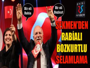 Kahramanlık türkülerinin seslendirildiği programda sahneye davet edilen Büyükşehir Belediye Başkanı Mehmet Sekmen, davetlileri bir eliyle Rabia bir eliyle de Bozkurt işareti yaparak selamladı. Sekmenin bu selamlaması programa katılan davetliler tarafından büyük alkış aldı.