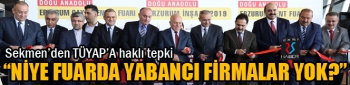 EKSİ25HABER / ERZURUM - Erzurum Büyükşehir Belediyesi ile TÜYAP Anadolu Fuarları A.Ş.’nin işbirliğinde düzenlenen Doğu Anadolu Erzurum İnşaat, Gayrimenkul ve Kent Fuarları’na hiçbir yabancı firmanın katılmaması Büyükşehir Belediye Başkanı Mehmet Sekmen'in tepkisini çekti.