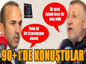 İlk açıklamayı yapan Aytemiz Alanyaspor Teknik Direktörü Mesut Bakkal, İki taraf için de kısır bir maç oldu. Ben şahsen keyif almadım. İkinci yarı maça iyi başlayan Erzurumspor galibiyetle ayrıldı. Hedefimiz 5te 5 yapmaktı. İki sakat çıktı bu maçta. Bu maçı burada kazanmamız lazımdı, üretkenliğimiz yoktu. Erzurumsporu tebrik ederim şeklinde konuştu.