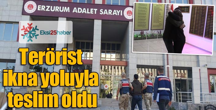 EKSİ25HABER / ERZURUM - Erzurum İl Jandarma Komutanlığınca terör örgütü PKK'ya yönelik yürüttüğü ikna çalışmaları sonucu, bir PKK'lı terörist güvenlik güçlerine teslim oldu. Erzurum İl Jandarma Komutanlığınca teslim olması sağlanan terörist, Şırnak ili Habur Sınır Kapısından teslim alınarak, Erzurum'a getirildi. PKK'lı terörist ailesiyle görüştürüldükten sonra, jandarmadaki işlemlerinin ardından adliyeye sevk edildi.