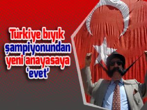 EKSİ25HABER / ERZURUM - Sosyal medyada başlatılan yeni anayasa için 'evet' kampanyasına Erzurum'un Horasan ilçesinde yaşayan ve 1 metre 61 santimetre uzunluğundaki bıyıklarıyla fenomen haline gelen Türkiye bıyık şampiyonu Hacı Kırmaç da katılarak 'evet' dedi.