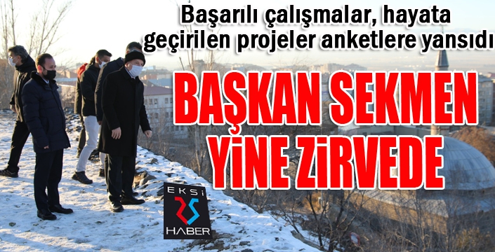1 Kasım - 27 Aralık tarihinde yapılan ankette vatandaşlara “Genel olarak düşündüğünüzde Büyükşehir Belediye Başkanınız sizce başarılı mıdır, başarısız mıdır?” sorusu yöneltildi. Yapılan ankette yüzde 56,1 oy alan Başkan Sekmen, metropol şehirleri yöneten başkanları bile geride bıraktı. Hatırlanacağı gibi Erzurum Büyükşehir Belediye Başkanı Mehmet Sekmen, yatırım bütçesi kullanımında üç yıl üst üste Türkiye birincisi seçilmişti. Öte yandan Erzurum Büyükşehir Belediye Başkanı Mehmet Sekmen, Covid-19 ile mücadelede de yerel yönetimler arasında Türkiye birincisi seçilmişti.