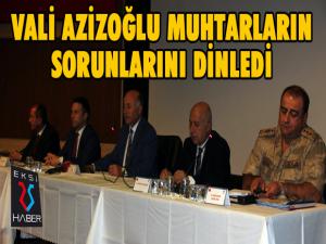 Muhtarların sorunlarını dinleyip not alan Vali Seyfettin Azizoğlu köylerde ki ve mahallelerde ki sorunlarla ilgilenileceğini ve en kısa sürede çözümler bulunacağını belirtirken köy ve mahalle vatandaşlarına rahatsızlık veren durumlarında ortadan kaldırılacağını söyledi.