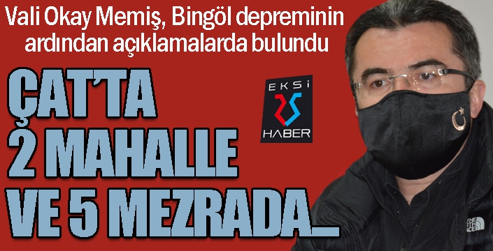 EKSİ25HABER / ERZURUM - Erzurum Valisi Okay Memiş, Bingöl’ün Karlıova ilçesinde 5,7 şiddetinde meydana gelen depremin Erzurum’da da hissedilmesi üzerine açıklamalarda bulundu. Vali Memiş, “Erzurum’un Çat ilçesinde Karlıova’daki deprem meydana gelmesi üzerine 5 mahalle 2 mezrada evlerde çatlak ve yıkım oldu, 1 vatandaşımızın kafasına taş düşmesi sonucu bir kişi hafif şekilde yaralandı” dedi.