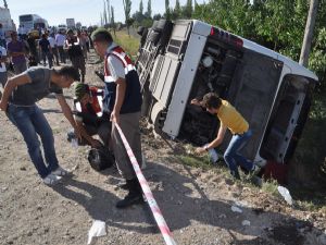 Aksaray'da yolcu otobüsünün devrilmesi sonucu ilk belirlemelere göre 8 kişi öldü, 15 kişi yaralandı.