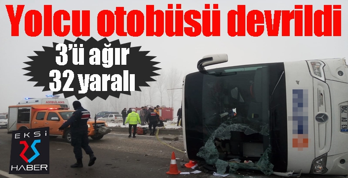 Isparta’dan Konya yönüne seyreden yolcu otobüsünün, sürücünün kontrolünden çıkarak devrilmesi sonucu 3'ü ağır 29 kişi yaralandı.