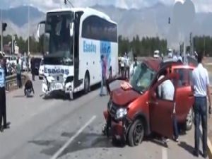 Erzincan'da yolcu otobüsü ile otomobilin çarpıştığı kazada 1 kişi öldü, 2 kişi ise yaralandı.