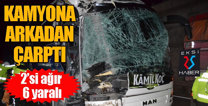 EKSİ25HABER / ERZURUM - Bilecik'te seyir halindeki bir yolcu otobüsü önünde seyreden kamyona arkadan çarptı. Kazada 2’si ağır 6 kişi yaralandı.