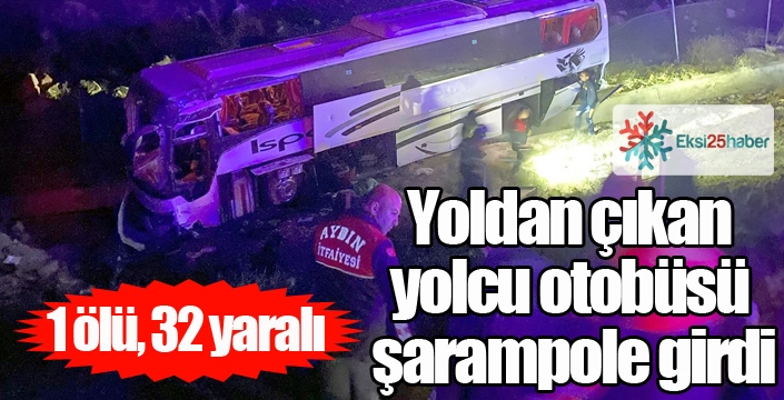 EKSİ25HABER / ERZURUM - Kaza, Aydın-Denizli otobanı Yamalak mevkisinde sabah erken saatlerde meydana geldi. Edinilen bilgiye göre, Aydın’dan Antalya’ya doğru ilerleyen Isparta Petrol Turizm’e ait G.D. idaresindeki 32 AEZ 410 plakalı Mercedes yolcu otobüsü, şoförünün direksiyon hakimiyetini kaybetmesi üzerine yoldan çıkarak şarampole girdi. Kaza ihbarı üzerine bölgeye çok sayıda sağlık, itfaiye, AFAD ve jandarma ekipleri sevk edildi. Kazada Umut Ergül (27) isimli yolcu otobüs tekerleği ile su kanalı arasında sıkışarak hayatını kaybederken, 2’si personel 30’u yolcu toplam 32 kişi ise yaralandı. Yaralılar bölgeye sevk edilen ambulanslarla çevredeki hastanelere kaldırılırken, yaralılardan 4’ünün durumunun ağır olduğu öğrenildi. Kazayla ilgili soruşturma sürüyor.