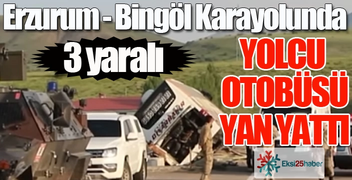 EKSİ25HABER / ERZURUM - Kaza sabah saatlerinde Karlıova İlçesi Dörtyol mevkiinde meydana geldi. Edinilen bilgiye göre, Diyarbakır'dan Erzurum istikametine seyreden Star Diyarbakır Seyahat firmasına ait yolcu otobüsü sürücüsünün direksiyon hakimiyetini kaybetmesiye orta refüje girerek yan yattı. Feci kazada 3 kişi yaralandı.